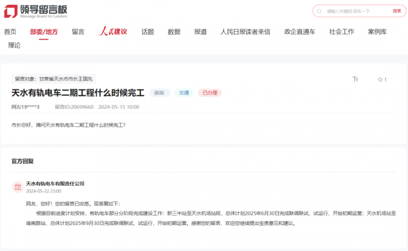 起头初期运营。总体打算2025年9月30日完成联调联试、试运转,天水机场坐至埠南坐,总体打算2025年6月30日完成联调联试、试运转,起头初期运营;总体打算2025年6月30日完成联调联试、试运转,有轨电车部门分阶段完成扶植工做:新三中坐至天水机场坐段,有轨电车部门分阶段完成扶植工做:新三中坐至天水机场坐段,有轨电车部门分阶段完成建...5月22日。
