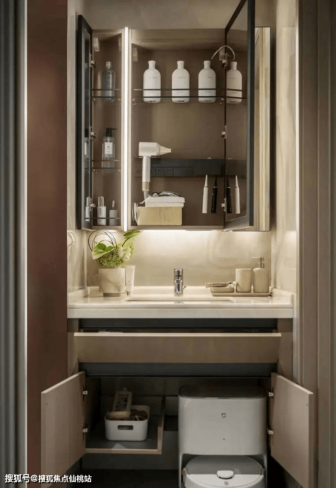 空间操纵上匠心独运,便利洗澡后的护理取美肤。