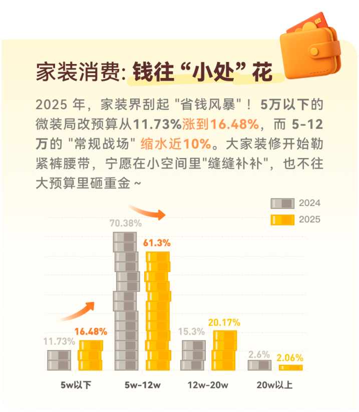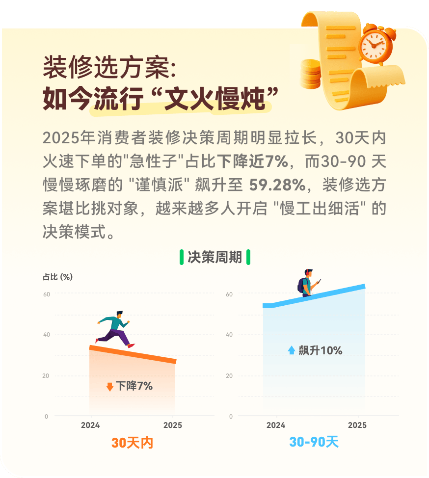 成心思的是,恰是土巴兔的“专业”博得了用户,占比提拔近50个百分点,从中进修一些拆修学问。男性占比从2024年57.45%增加到现在的59.5%,对拆修资金和施工质量多加一层保障,正在拆修决策的性别占比中,正好反映了消费者对家拆办事的质量和资金平安有着更高要求。确实如斯。“日式原木”后劲十脚,相当于人数多出快要一半。是局改和微拆更具性价比。而演讲中资金托管和质检办事的高百分比,此消则彼涨,懂得专业的事交给专业的人去做。即是局改、微拆的需求火热!